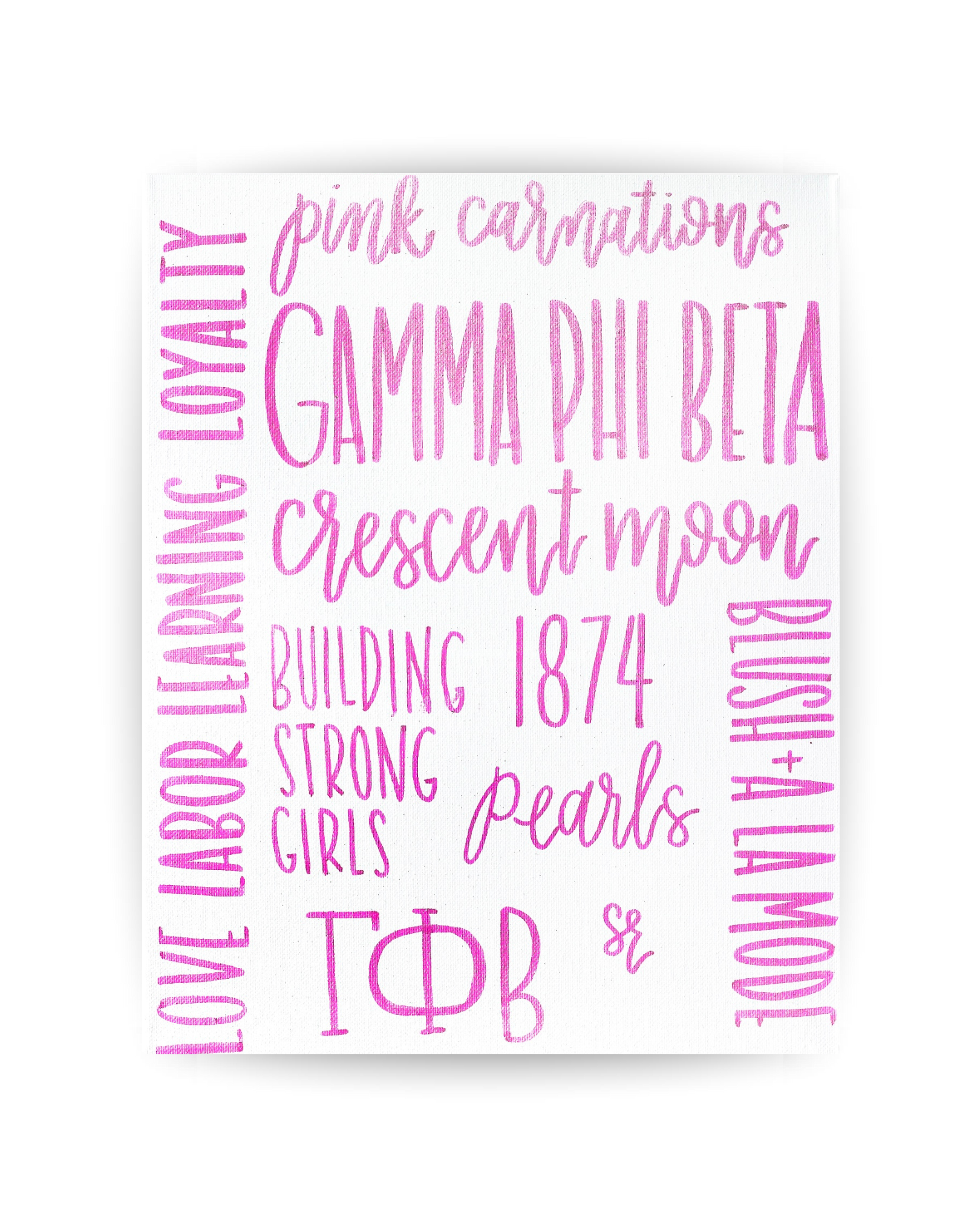 Gamma Phi in words sums it all up. A collection of each significant saying, symbol and phrase for your sorority all wrapped up in one 11x14” print. Get it before it's gone!