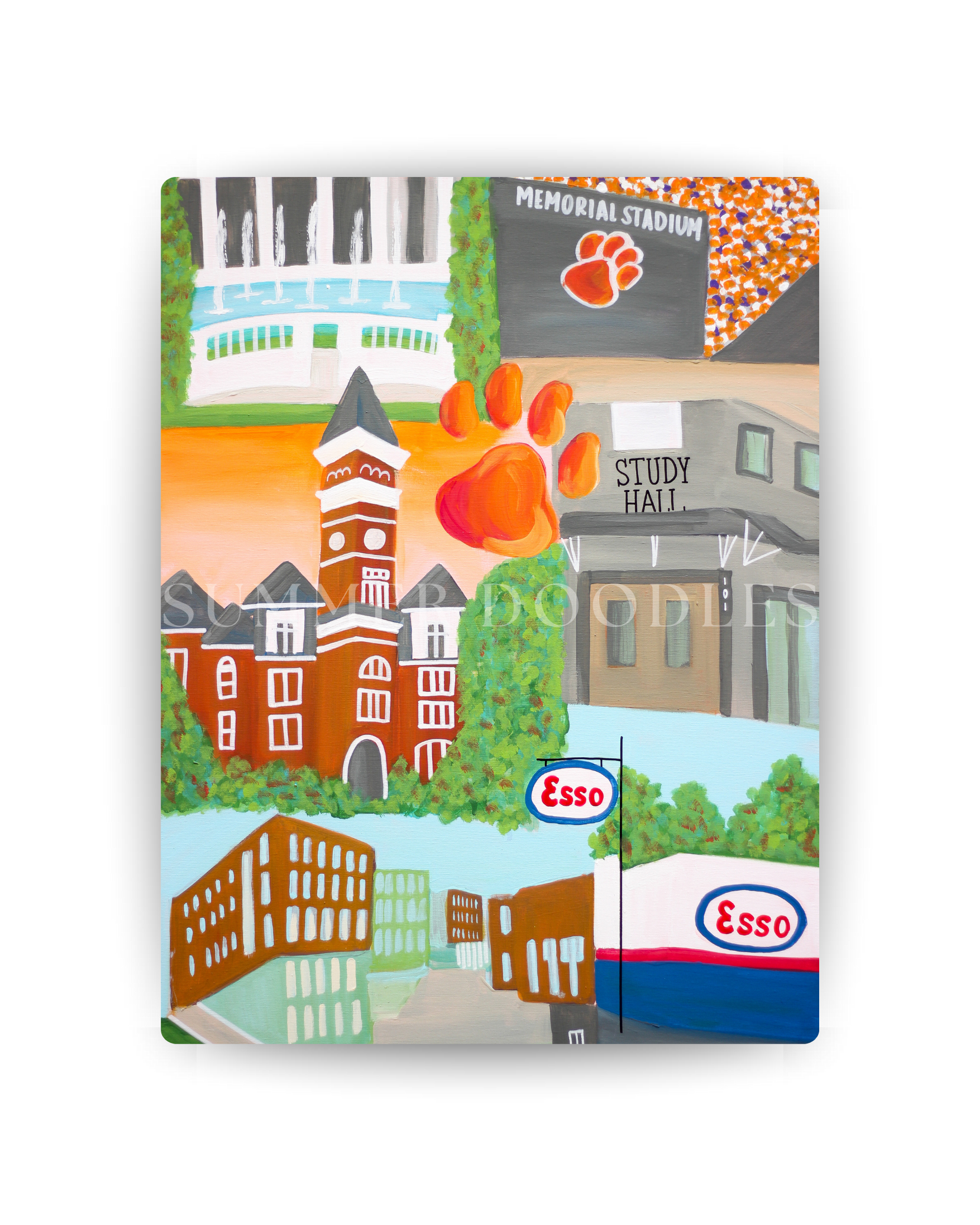 The best of Clemson in one piece of art! Featuring the Stadium, Tillman, Esso and more beloved landmarks in this 11x14” print. Perfect for the tiger in your life.